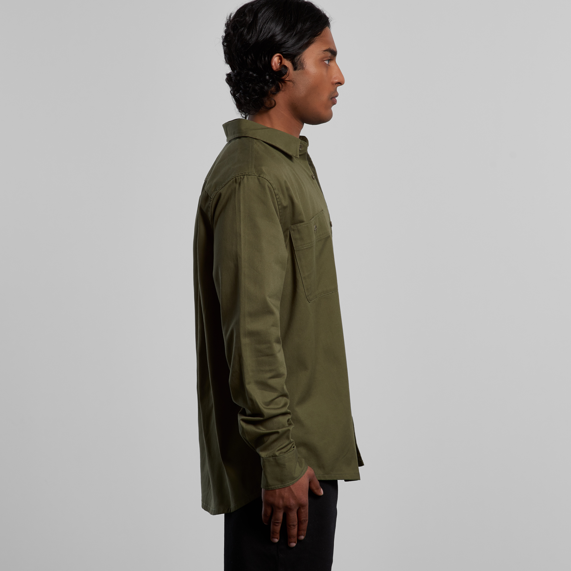 Long sleeve button up shirt, two chest pockets with pen channel, tonal buttons,  side seamed, back yoke with hang loop, preshrunk to minimise shrinkage