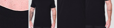 Neck ribbing, side seamed, neck seam twin needle stitch, shoulder to shoulder tape, double needle hems, preshrunk to minimise shrinkage